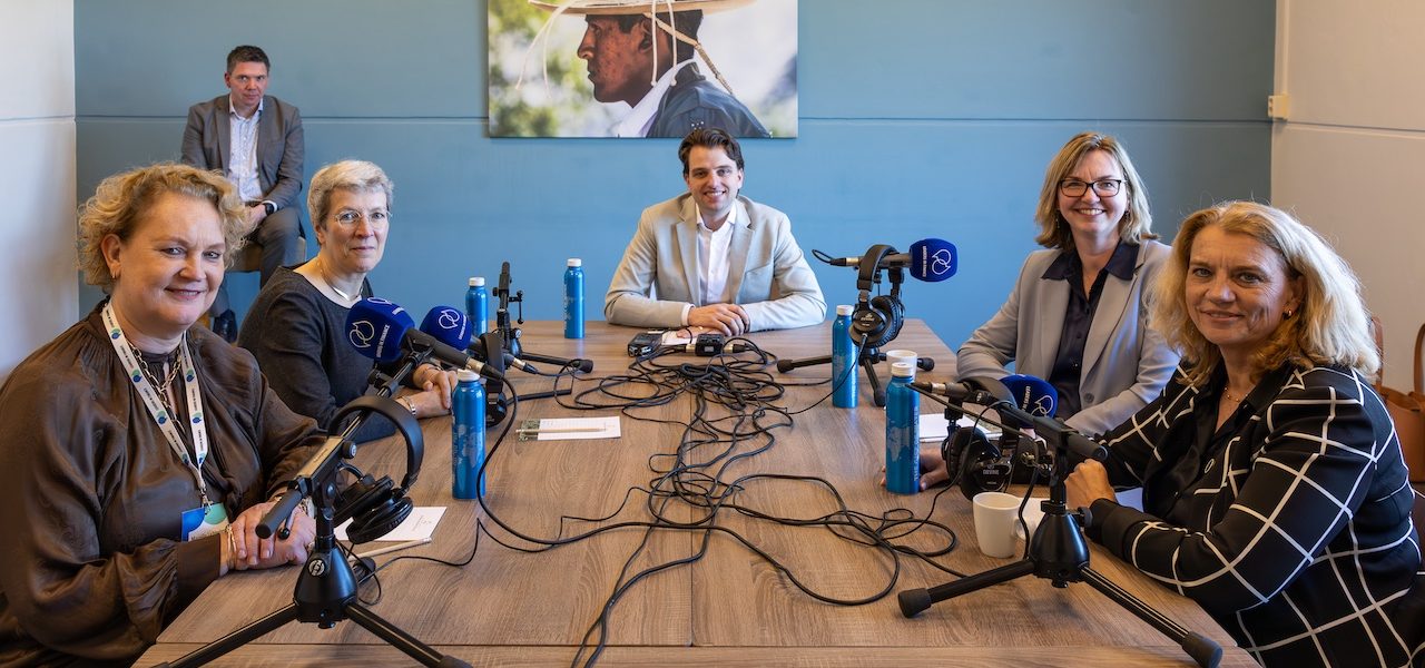 Aan tafel zitten Fieke van der Lecq, Regeringscommissaris Transitie Pensioenen en hoogleraar Pensioenmarkten aan de Vrije Universiteit, Hildegard Elgersma, partner en sectorleider Pensioenen bij EY, Mariëlle Lichtenberg, CEO van Blue Sky Group, en Annette Mosman, CEO van APG.